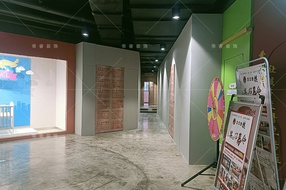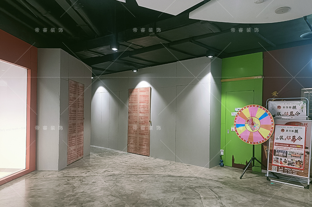 成都帝睿裝飾溫馨提示:假如裝修工程是位于商場以內,通常要把外側打圍高度延伸至頂,并做密封處理,目的是為了規(guī)避揚塵和阻擋部分施工噪音;裝修工程如果位于人口密集臨街地段,只需適當控制打圍高度,一般建議高度至少2米以上。